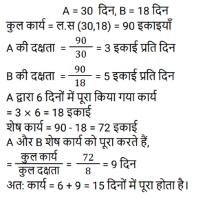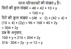 अंकगणितीय तर्कशक्ति (भाग-II)Total Questions: 5011. एक बस में कुल 60 छात्र यात्रा कर रहे हैं। लड़कों तथा लड़कियों की संख्या का अनुपात 2 : 1 है। फिर, पहले बस स्टॉप पर 15 लड़के उतर जाते हैं तथा 5 लडकियाँ चढ़ती हैं। दूसरे बस स्टॉप पर 5 लड़के चढ़ते हैं और 10 लड़कियाँ उतर जाती हैं। दूसरे स्टॉप के बाद बस में लड़कों तथा लड़कियों की संख्या का क्या अनुपात है? [SSC CPO 23/11/2020 (Evening)](a) 3:2(b) 2:3(c) 2:1(d) 3:1Correct Answer: (c) 2:1Solution:प्रारंभ में लड़के = 40 और लड़कियां = 20 पहले बस स्टॉप के बाद , लड़के = 40 - 15 = 25 और लड़कियाँ = 20 + 5 = 25 दूसरे बस स्टॉप के बाद, लड़के = 25 + 5 = 30 और लड़कियाँ = 25 - 10 = 15 आवश्यक अनुपात = 30 : 15 = 2 : 1 है।12. एक संख्या के वर्ग, उसके घन तथा उसकी अगली संख्या के घन का योग 205 है। वह संख्या कौन सी है? [SSC CPO 23/11/2020 (Evening)](a) 5(b) 3(c) 4(d) 6Correct Answer: (c) 4Solution:a² + a³ + (a + 1)³ = 205 a = 4 समीकरण को संतुष्ट करता है।13. जब एक संख्या को, उसकी अगली संख्या में तथा एक अन्य संख्या जो उसकी अगली संख्या से चार गुना है, में जोड़ा जाता है, तो तीनों संख्याओं का जोड़ 95 आता है। वह संख्या ज्ञात करें। [SSC CPO 24/11/2020 (Morning)](a) 15(b) 17(c) 16(d) 14Correct Answer: (a) 15Solution:प्रश्न के अनुसार, X + X + 1 + 4 (X+ 1) = 95 = 6X + 5 = 95 अत: 6X = 90 और X = 1514. 73 दोस्तों के समूह में, 14 दोस्त जिम और कराटे दोनों कक्षाओं में जाते हैं, जबकि 7 दोस्त न तो जिम क्लास में जाते हैं और न ही कराटे क्लास। अगर कुल 36 दोस्त जिम क्लास में जाते हैं, तो कितने दोस्त केवल कराटे क्लास में जाते हैं? [SSC CPO 24/11/2020 (Morning)](a) 30(b) 32(c) 23(d) 44Correct Answer: (a) 30Solution:दोस्त जो या तो जिम जाते हैं या कराटे = 73 - 7 = 66 सिर्फ कराटे क्लास में जाने वाले दोस्त = 66 - 36 = 3015. ₹ 2,871 को क्रमशः A, B और C के बीच 9:11:13 के अनुपात में विभाजित किया जाना है। A की तुलना में C (₹ में) को कितना अधिक पैसा मिलेगा? [SSC CPO 24/11/2020 (Evening)](a) ₹783(b) ₹348(c) ₹402(d) ₹296Correct Answer: (b) ₹348Solution:a + b + c = 2871 माना , a = 9R , b = 11R , c = 13R ⇒ 33R = 2871 ⇒ R = 2871/33 = 87 A और C के बीच अनुपात का अंतर है 4R तो 4 × 87 = 34816. उस संख्या को ज्ञात करे जो स्वयं को 14 बार जोड़े जाने पर 195 देता है। [SSC CPO 25/11/2020 (Morning)](a) 15(b) 14(c) 16(d) 13Correct Answer: (d) 13Solution:x + 14x = 195 15x = 195 ⇒ x = 1317. एक खेत में, कुछ परिचारकों के साथ 48 बत्तख, 42 बकरियां और 10 गाय हैं। यदि पैरों की कुल संख्या सिर की संख्या से 216 अधिक है, तो खेत पर उपस्थित लोगों की संख्या क्या है? [SSC CPO 25/11/2020 (Morning)](a) 12(b) 14(c) 8(d) 10Correct Answer: (a) 12Solution:18. चार साइकिल टायर और तीन ट्यूब की लागत ₹ 720 है, जबकि तीन साइकिल टायर और चार ट्यूब की लागत ₹ 610 है। एक ट्यूब की कीमत क्या है? [SSC CPO 25/11/2020 (Evening)](a) ₹42(b) ₹40(c) ₹45(d) ₹50Correct Answer: (b) ₹40Solution:4 टायर + 3 ट्यूब = 720 ……(1) 3 टायर + 4 ट्यूब = 610 …….(2) eqn(2) को 4 से और eqn. (1) को 3 से गुणा करें और फिर घटाएं , हमें प्राप्त होता है , 16 ट्यूब - 9 ट्यूब = 610 × 4 - 720 × 3 7 ट्यूब = 280 ⇒ 1 ट्यूब = 40 रुपये।19. एक नल 4 घंटे में 1250 लीटर का टैंक भरता है, जबकि दूसरा नल उसी टैंक को 8 घंटे में भर सकता है। एक आउटलेट नल 6 घंटे में उस टैंक को खाली कर सकता है। यदि सभी तीन नल एक साथ खोले जाते हैं, तो टैंक को पूरी तरह से भरने में कितना समय लगेगा ? [S