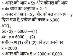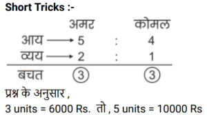 42. अमर और कोमल की आय का अनुपात 5 : 4 है और उनके व्यय का अनुपात 2 : 1 है। यदि उनमें से प्रत्येक 6,000 रुपये प्रति माह बचाता है, तो अमर की आय ज्ञात कीजिए। [RRB NTPC 04/01/2021 (Evening)]