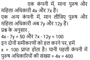41. एक कंपनी में, पुरुष से महिला अधिकारियों का अनुपात 4 : 7 है। यदि 50 पुरुष अधिकारियों और 100 महिला अधिकारियों को दूसरी कंपनी में स्थानांतरित कर दिया जाता है, तो पुरुष से महिला अधिकारियों का अनुपात 7 : 12 हो जाता है। कंपनी में स्थानांतरण से पहले पुरुष अधिकारियों की संख्या ज्ञात कीजिए। [RRB NTPC 30/12/2020 (Evening)]