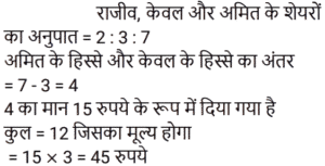 45. एक निश्चित राशि को तीन दोस्तों राजीव, केवल और अमित के बीच 2 : 3 : 7 के अनुपात में विभाजित किया गया था। यदि अमित का हिस्सा केवल से 15 रुपये अधिक है, तो विभाजित की गई राशि का योग कितना है? [RRB NTPC 07/01/2021 (Evening)]