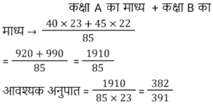 49. 30 अंकों की गणित की परीक्षा में 40 छात्रों के कक्षा A के औसत प्राप्त अंक 23 है। इसी परीक्षा में 45 छात्रों के कक्षा B का औसत प्राप्त अंक 22 है। दोनों कक्षाओं के औसत अंकों का कक्षा A के औसत अंकों से अनुपात कितना है? [RRB NTPC 10/01/2021 (Evening)]