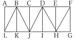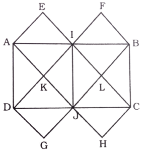 आकृति गणना (101-150 प्रश्न)Total Questions: 5041. उस विकल्प का चयन करें जो दिए गए चित्र में त्रिकोणों की संख्या को दर्शाता है। [RRB ALP एवं Technician परीक्षा, 31.08.2018 (प्रथम पाली)](1) 12(2) 10(3) 14(4) 15Correct Answer: (3) 14Solution:त्रिभुज इस प्रकार है :—ABL, BLK, BKJ, BJC, CDJ, DJI, DIH, DHE, EHF, FHG LBJ, BJD, JDH, DHFअतः त्रिभुजों की संख्या = 1442. उस विकल्प का चयन करें, जो प्रस्तुत चित्र में त्रिकोण की संख्या का प्रतिनिधित्व करता है। [RRB ALP एवं Technician परीक्षा, 31.08.2018 (तृतीय पाली)](1) 6(2) 5(3) 4(4) 7Correct Answer: (4) 7Solution:त्रिभुज इस प्रकार हैं– ABC, DEF, DCF, GHI, GFI, JKL, JIL अतः त्रिभुजों की संख्या = 743. उस विकल्प का चयन करें जो दिए गए चित्र में वर्गों की संख्या को दर्शाता है। [RRB ALP एवं Technician परीक्षा, 31.08.2018 (तृतीय पाली)](1) 2(2) 1(3) 4(4) 3Correct Answer: (1) 2Solution:वर्ग इस प्रकार हैं : ACGE, BDHF वर्गों की संख्या = 244. विकल्प का चयन करें जो प्रस्तुत चित्र में वर्गों की संख्या का प्रतिनिधित्व करता है। [RRB ALP एवं Technician परीक्षा, 31.08.2018 (तृतीय पाली)](1) 4(2) 6(3) 5(4) 7Correct Answer: (2) 6Solution:वर्ग इस प्रकार हैं : ABJC, BCED, BFJI, FCGJ, JGEH, IJHDकुल वर्गों की संख्या = 645. उस विकल्प का चयन करें जो दिए गए आकृति में त्रिकोणों की संख्या को दर्शाता है। [RRB ALP एवं Technician परीक्षा, 04.09.2018 (प्रथम पाली)](1) 8(2) 10(3) 12(4) 13Correct Answer: (3) 12Solution:त्रिभुज इस प्रकार है :– AIB, AIH, BIC, CIF, FIG, GIH, AHC, HFC, AHF, ACF, AIC, HIFअतः त्रिभुजों की संख्या = 1246. दी गई आकृति में कितने वर्ग हैं? [RRB Junior Engineer परीक्षा, 22.05.2019 (तृतीय पाली)](1) 20(2) 11(3) 25(4) 16Correct Answer: (4) 16Solution:वर्ग इस प्रकार हैं;AEPH ; REMI ; IMPO ; HPFD ; OPJN ; JNFS ; EMTK ; MKQP ; EBGP ; PQLN ; NLUF ; PGCF ; ROTQ ; IJKL ; OQUS ; ABCD :47. दी गई आकृति में कितने त्रिभुज हैं? [RRB Junior Engineer परीक्षा, 23.05.2019 (द्वितीय पाली)](1) 8(2) 4(3) 7(4) 5Correct Answer: (4) 5Solution:त्रिभुज इस प्रकार है;ADE ; DBF ; FEC ; DFE ; ABC.48. दी गई आकृति में कितने त्रिभुज हैं? [RRB Junior Engineer परीक्षा, 23.05.2019 (तृतीय पाली)](1) 24(2) 28(3) 20(4) 32Correct Answer: (2) 28Solution:त्रिभुज इस प्रकार हैं,ABG; AGC; ABC; BIG; BID; BGD; DIH; IHG; DGH; BDH; BHG; GJC; JCE; GEC; GHJ; JHE; GHE; GHC; CHE; DHF; HFE; DEF; BHC; DGE; GDF; GEF; ABH; AHC;49. दी गई आकृति में कितने वर्ग हैं? [RRB Junior Engineer परीक्षा, 24.05.2019 (द्वितीय पाली)](1) 9(2) 15(3) 8(4) 6Correct Answer: (2) 15Solution:वर्ग इस प्रकार हैं:AEQF ; FQGB ; EDHQ ; QHCG ; ABCD ; JRQU ; UQSK ; RITQ ; QTLS ; JILK ; NVQX ; XQWO ; VMYQ ; QYPW ; NMPO.50. दी गई आकृति में कितने त्रिभुज हैं? [RRB Junior Engineer परीक्षा, 24.05.2019 (तृतीय पाली)](1) 12(2) 16(3) 22(4) 24Correct Answer: (3) 22Solution:त्रिभुज इस प्रकार हैं; 22AEI; AIK; ADK; DKJ; ADJ; IKJ; AIJ; DJG; IFB; IBL; IJL; JLC; IJC; BLC; IBC; JCH; ADI; IDJ; BJC; IBJ; AJB; DIC;Submit Quiz« Previous12345