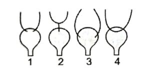 33. निम्नांकित से कौन सी आकृति मानव उत्सर्जन तंत्र में मूत्रवाहिनी (नीली रेखाओं के रूप में दर्शाई गई है) और मूत्राशय की स्थिति दर्शाती है? [RRC Group D 28/09/2022 (Evening)]