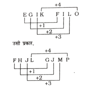 एग्रीकल्चर इंस्पेक्टर (कृषि विभाग) परीक्षा-2017 प्रथम पालीTotal Questions: 10011. ज्ञात करें:- 9/2 - (2/3 + 5/2)(1) 4/3(2) 7/3(3) 5/2(4) 7/2Correct Answer: (1) 4/3Solution:9/2 - (2/3 + 5/2) = 9/2 - (4+15)/6 (3, 2 का ल.स. 6) = 9/2 - 19/6 = (27-19)/6 (2, 6 का ल.स. 6) = 8/6 = 4/312. एक विद्यालय में, 1800 लड़के और 1200 लड़कियाँ हैं। एक परीक्षा में केवल 32% लड़के और 50% लड़कियाँ उत्तीर्ण हुई हैं। उस परीक्षा में उत्तीर्ण होने वाले कुल विद्यार्थियों की संख्या ज्ञात करें।(1) 1778(2) 1176(3) 1774(4) 1776Correct Answer: (2) 1176Solution:विद्यालय में, लड़कों की संख्या = 1800 लड़कियों की संख्या = 1200 उत्तीर्ण हुए लड़कों की संख्या = 1800 × 32/100 = 576 उत्तीर्ण हुए लड़कियों की संख्या = 1200 × 50/100 = 600 परीक्षा में होने वाले कुल विद्यार्थियों की संख्या = 576 + 600 = 117613. रोहित ने एक पासा फेंका। एक विषम अंक आने की संभाव्यता क्या है?(1) 1/3(2) 1/2(3) 1/4(4) 1/6Correct Answer: (2) 1/2Solution:यहाँ S = {1, 2, 3, 4, 5, 6} अतः n(S) = 6 O = {1, 3, 5} अत: n(O) = 3 P(O) = n(O) / n(S) = 3 / 6 = 1 / 214. जब मनीषा अपनी स्कूटर का विक्रय 25,000 रुपए में करती है तो उसे 15% की हानि होती है। उसे 15% लाभ प्राप्त करने के लिए अपने स्कूटर का विक्रय कितनी रकम में करना चाहिए?(1) 33,150(2) 29,325(3) 34,500(4) 30,000Correct Answer: (3) 34,500Solution:माना अभीष्ट विक्रय मूल्य = x रु. (100 - हानि %) : (प्रथम वि.मू.) = (100 - लाभ %) : x = (100 - 15) : 25,500 = (100 + 15) : x = x = 25,500 × 115 / 85 = 34,500 रु. अतः अभीष्ट विक्रय मूल्य = 34500 रु.15. 8, 18, 24 की समानुपाती चौथी संख्या ज्ञात करें।(1) 28(2) 72(3) 48(4) 54Correct Answer: (4) 54Solution:माना अभीष्ट चतुर्थानुपाती = x तब, 8 : 18 :: 24 : x = 8x = 24 × 18 x = 24 × 18 / 8 = 54 अतः अभीष्ट संख्या = 5416. असंगत ज्ञात करें।1, 4, 9, 16, 23, 25, 36(1) 9(2) 16(3) 23(4) 25Correct Answer: (3) 23Solution:23 को छोड़कर बाकी सभी संख्या किसी-न-किसी अंक का Square है।17. असंगत ज्ञात करें।835, 734, 642, 751, 853, 981, 532(1) 751(2) 853(3) 981(4) 532Correct Answer: (1) 751Solution:751 में सभी विषय अंक है, जबकि अन्य में एक कम-से-कम सम संख्या है।18. लुप्त पद ज्ञात करें।EGIK : FILO :: FHJL : ?(1) GJMP(2) GMJP(3) JGMP(4) JGPMCorrect Answer: (1) GJMPSolution:19. अंकमाला को देखिए: 20, 19, 17, x, 10, 5(1) 12(2) 13(3) 14(4) 15Correct Answer: (3) 14Solution:20. यदि M, N का भाई है; और M, D का भाई है तो निम्नलिखित कौन सा कथन निश्चित रूप से सत्य है?(1) N, B का भाई है।(2) N, D का भाई है।(3) M, B का भाई है।(4) D, M का भाई है।Correct Answer: (2) N, D का भाई है।Solution:Submit Quiz« Previous12345678910Next »