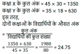 42. कक्षा X में 45 विद्यार्थियों ने 30 औसत अंक प्राप्त किए हैं और कक्षा Y में 35 विद्यार्थियों के औसत अंक 18 हैं। दोनों कक्षाओं के विद्यार्थियों के औसत अंक ज्ञात कीजिए। [Higher Secondary 25/06/2024 (Shift-2)]