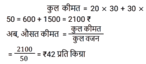 41. जॉन 20 किग्रा गेहूँ ₹30 प्रति किग्रा की दर से और 30 किग्रा गेहूँ ₹50 प्रति किग्रा की दर से खरीदता है। उसका औसत मूल्य ज्ञात कीजिए। [Higher Secondary 25/06/2024 (Shift - 2)]