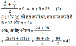 7. A का 1/4 और B का 1/3 का औसत 5 है, और A का 1/2 का और B का 1/2 का औसत 9 है। 2A और 3B का औसत है: [SSC MTS 22/10/2021 (Afternoon)]