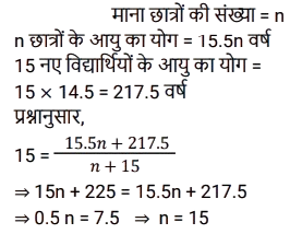 2. एक कक्षा में छात्रों के समूह की औसत आयु 15.5 वर्ष है। 14.5 वर्ष की औसत आयु वाले 15 नए छात्र समूह में शामिल होते हैं, जिससे कक्षा में छात्रों की औसत आयु 15 वर्ष हो जाती है। कक्षा में प्रारंभ में उपस्थित छात्रों की संख्या है: [SSC MTS 13/10/2021 (Evening)]