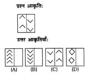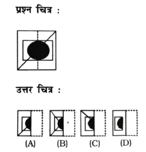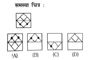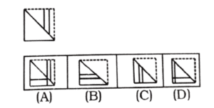 कागज के टुकड़े (1-29 प्रश्न)Total Questions: 2921. जब इसे बिंदुदार रेखा पर मोड़ दिया जाता है, तो कौन-सा पैटर्न पारदर्शी शीट के समान होगा? [RRB Group 'D' CBT परीक्षा, 28.09.2018 द्वितीय पाली](1) A(2) D(3) C(4) BCorrect Answer: (1) ASolution:जब दिए गए प्रश्न चित्र को बिंदुवार रेखा पर मोड़ दिया जाता है तो विकल्प (A) प्राप्त होगा।22. बिंदुरेखा से मोड़े जाने पर पारदर्शी शीट किस पैटर्न के समान होगी? [RRB Group 'D' CBT परीक्षा, 30.10.2018 द्वितीय पाली](1) B(2) D(3) C(4) ACorrect Answer: (1) BSolution:बिन्दुरेखा से मोड़े जाने पर प्रश्न आकृति उत्तर आकृति के विकल्प B के समरूप बनेगा।23. उस विकल्प का चयन करें जो जब निम्न पारदर्शी पन्ने (समस्या चित्र) को बिंदीदार रेखा पर मोड़ने पर प्राप्त होगा। [RRB ALP एवं Technician परीक्षा, 14.08.2018 प्रथम पाली](1) C(2) A(3) D(4) BCorrect Answer: (3) DSolution:बिंदीदार रेखा पर मोड़ने पर प्राप्त आकृति 'D' होगा।24. उस उत्तर आकृति का चयन करें जो निम्न पारदर्शी शीट (समस्या आकृति) को बिंदीदार रेखा पर मोड़ने पर प्राप्त होगी। [RRB ALP एवं Technician परीक्षा, 30.08.2018 तृतीय पाली](1) A(2) C(3) B(4) DCorrect Answer: (2) CSolution:बिन्दुयुक़्त रेखा के अनुदिश मोड़ने पर प्राप्त आकृति 'C' होगा।25. उस विकल्प का चयन करें जो निम्न पारदर्शी शीट (समस्या चित्र) को, दर्शाई गई बिंदुदार रेखा पर मोड़ने पर, चित्रित करता है। [RRB ALP एवं Technician परीक्षा, 31.08.2018 प्रथम पाली](1) C(2) D(3) A(4) BCorrect Answer: (1) CSolution:बिंदुदार रेखा पर मोड़ने पर प्राप्त आकृति 'C' होगा।26. उस विकल्प का चयन करें जो, दर्शाए गए बिन्दुओं की रेखा पर पारदर्शी कागज (प्रश्न चित्र) को मोड़ने पर चित्रांकित होता है। [RRB ALP एवं Technician परीक्षा, 31.08.2018 प्रथम पाली](1) C(2) A(3) B(4) DCorrect Answer: (4) DSolution:दर्शाए गए बिन्दुओं की रेखा पर मोड़ने से प्राप्त उत्तर आकृति 'D' होगा।27. उस विकल्प का चयन करें जो नीचे दी गई पारदर्शी शीट (प्रश्न चित्र) को दिखाई गई बिंदुदार रेखा पर मोड़ने पर दिखता है। [RRB ALP एवं Technician परीक्षा, 31.08.2018 तृतीय पाली](1) C(2) D(3) A(4) BCorrect Answer: (4) BSolution:बिंदुदार रेखा पर मोड़ने पर उत्तर आकृति 'B' दिखाई देगा।28. उस विकल्प का चयन करें जो, दर्शाए गए बिन्दुओं की रेखा पर पारदर्शी कागज (प्रश्न चित्र) को मोड़ने पर चित्रांकित होता है। [RRB ALP एवं Technician परीक्षा, 31.08.2018 तृतीय पाली](1) A(2) C(3) D(4) BCorrect Answer: (1) ASolution:पारदर्शी कागज को मोड़ने पर प्राप्त चित्र 'A' होगा।29. उस विकल्प का चयन करें, जो दिखाए गए डॉटेड लाइन पर मोड़ने के बाद निम्नलिखित पारदर्शी-प्रवेश पत्र (समस्या चित्र) को प्रदर्शित करता है। [RRB ALP एवं Technician परीक्षा, 04.09.2018 प्रथम पाली](1) A(2) B(3) C(4) DCorrect Answer: (2) BSolution:बिन्दूदार रेखा के सापेक्ष मोड़ने पर आकृति 'B' प्राप्त होगा।Submit Quiz« Previous123