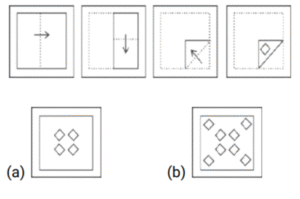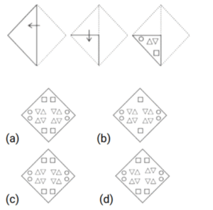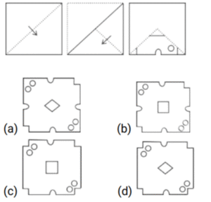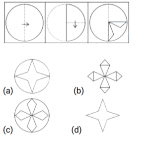 कागज मोड़ना (भाग-V)Total Questions: 3511. कागज के एक टुकड़े को मोड़ने का क्रम और मोड़े गए कागज को जिस तरह से काटा गया है, उसे निम्नलिखित प्रश्न आकृतियों में दिखाया गया है। अनफोल्ड होने पर यह पेपर (संबंधित विकल्पों में) कैसा दिखेगा ? [SSC CGL 17/08/2021 (Morning)](a)(b)(c)(d)Correct Answer: (d)Solution:12. कागज के एक टुकड़े को मोड़ने का क्रम और मोड़े गए कागज को जिस तरह से काटा गया है, उसे निम्नलिखित प्रश्न आकृतियों में दिखाया गया है। अनफोल्ड होने पर यह पेपर (संबंधित विकल्पों में) कैसा दिखेगा ? [SSC CGL 17/08/2021 (Afternoon)](a)(b)(c)(d)Correct Answer: (b)Solution:13. कागज के एक टुकड़े को मोड़ने का क्रम और मोड़े गए कागज को जिस तरह से काटा गया है, उसे निम्नलिखित प्रश्न आकृतियों में दिखाया गया है। अनफोल्ड होने पर यह पेपर (संबंधित विकल्पों में) कैसा दिखेगा ? [SSC CGL 17/08/2021 (Evening)](a)(b)(c)(d)Correct Answer: (b)Solution:14. कागज के एक टुकड़े को मोड़ने का क्रम और मोड़े गए कागज को जिस तरह से काटा गया है, उसे निम्नलिखित प्रश्न आकृतियों में दिखाया गया है। अनफोल्ड होने पर यह पेपर (संबंधित विकल्पों में) कैसा दिखेगा ? [SSC CGL 18/08/2021 (Morning)](a)(b)(c)(d)Correct Answer: (c)Solution:15. कागज के एक टुकड़े को मोड़ने का क्रम और मोड़े गए कागज को जिस तरह से काटा गया है, उसे निम्नलिखित प्रश्न आकृतियों में दिखाया गया है। अनफोल्ड होने पर यह पेपर (संबंधित विकल्पों में) कैसा दिखेगा ? [SSC CGL 18/08/2021 (Afternoon)](a)(b)(c)(d)Correct Answer: (d)Solution:16. कागज के एक टुकड़े को मोड़ने का क्रम और मोड़े गए कागज को जिस तरह से काटा गया है, उसे निम्नलिखित प्रश्न आकृतियों में दिखाया गया है। अनफोल्ड होने पर यह पेपर (संबंधित विकल्पों में) कैसा दिखेगा ? [SSC CGL 20/08/2021 (Morning)](a)(b)(c)(d)Correct Answer: (a)Solution:17. कागज के एक टुकड़े को मोड़ने का क्रम और मोड़े गए कागज को जिस तरह से काटा गया है, उसे निम्नलिखित प्रश्न आकृतियों में दिखाया गया है। अनफोल्ड होने पर यह पेपर (संबंधित विकल्पों में) कैसा दिखेगा ? [SSC CGL 20/08/2021 (Evening)](a)(b)(c)(d)Correct Answer: (d)Solution:18. कागज के एक टुकड़े को मोड़ने का क्रम और मोड़े गए कागज को जिस तरह से काटा गया है, उसे निम्नलिखित प्रश्न आकृतियों में दिखाया गया है। अनफोल्ड होने पर यह पेपर (संबंधित विकल्पों में) कैसा दिखेगा ? [SSC CGL 23/08/2021 (Evening)](a)(b)(c)(d)Correct Answer: (c)Solution:19. कागज के एक टुकड़े को मोड़ने का क्रम और मोड़े गए कागज को जिस तरह से काटा गया है, उसे निम्नलिखित प्रश्न आकृतियों में दिखाया गया है। अनफोल्ड होने पर यह पेपर (संबंधित विकल्पों में) कैसा दिखेगा ? [SSC CHSL 12/04/2021 (Morning)](a)(b)(c)(d)Correct Answer: (b)Solution:20. कागज के एक टुकड़े को मोड़ने का क्रम और मोड़े गए कागज को जिस तरह से काटा गया है, उसे निम्नलिखित प्रश्न आकृतियों में दिखाया गया है। अनफोल्ड होने पर यह पेपर (संबंधित विकल्पों में) कैसा दिखेगा ? [SSC CHSL 12/04/2021 (Afternoon)](a)(b)(c)(d)Correct Answer: (c)Solution:Submit Quiz« Previous1234Next »