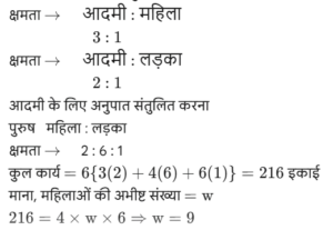 43. 3 पुरुष 4 महिलाएं तथा 6 लड़के एक साथ किसी कार्य को 6 दिन में कर सकते हैं। एक महिला, एक पुरुष की तुलना में तिगुना कार्य करती है तथा एक लड़का, एक पुरुष की तुलना में आधा कार्य करता है। इस कार्य को 4 दिनों में करने के लिए कितनी महिलाओं की आवश्यकता होगी ? [SSC CGL 13/06/2019 (Evening)]