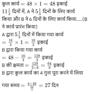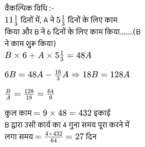 45. किसी निश्चित कार्य को करने के दौरान A और B एक - एक (एक के बाद एक) दिन कार्य करते हैं तथा पहले दिन कार्य की शुरुआत B करता है। A इस कार्य को अकेले 48 दिनों में कर सकता है यदि कार्य 11⅟₃ दिनों में समाप्त होता है, तो B अकेले 4 गुना कार्य कितने दिनों में करेगा ? [SSC CGL 07/06/2019 (Afternoon)]