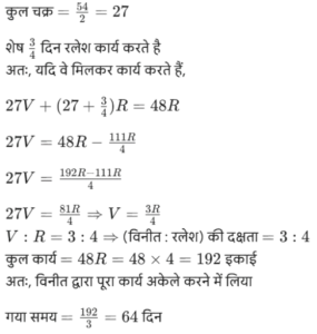 48. रत्नेश और विनीत बारी-बारी से एक दिन छोड़कर काम करते हैं और रत्नेश पहले दिन काम शुरू करता है। संपूर्ण काम 54³⁄₄ दिनों में पूरा हो जाता है। यदि रत्नेश अकेले उस काम को 48 दिनों में पूरा कर सकता है, तो विनीत अकेले उस काम को कितने दिनों में पूरा कर सकता है? [SSC CHSL Tier II (18/11/2024)]