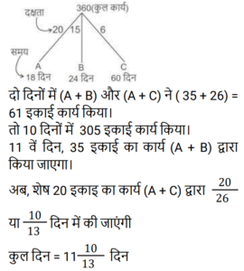 12. A, B और C एक कार्य को क्रमशः 18 दिन, 24 दिन और 60 दिन में पूरा कर सकते हैं। यदि A प्रतिदिन काम करता है, और वैकल्पिक दिनों में B और C द्वारा A को सहायता प्रदान की जाती है, जिसमें पहले दिन B, A की सहायता करता है, तो कार्य कितने दिनों में पूर्ण हो जाएगा? [Group D 26/09/2022 (Morning)]