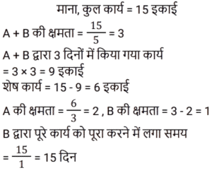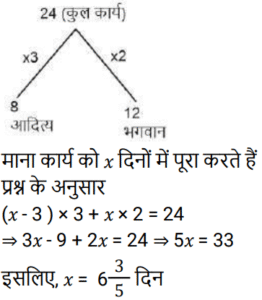 15. आदित्य किसी कार्य को अकेले 8 दिनों में पूरा कर सकता है और भगवान उसी कार्य को अकेले 12 दिनों में पूरा कर सकता है। उन्होंने एक साथ काम शुरू किया, लेकिन आदित्य को काम पूरा होने से 3 दिन पहले छोड़ना पड़ा। कार्य कितने दिनों में पूरा होगा? [Group D 27/09/2022 (Morning)]