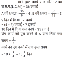 19. A और B एक कार्य को क्रमशः 9 दिन और 12 दिन में पूरा कर सकते हैं। A कार्य शुरू करता है, और वे एक-एक दिन छोड़कर कार्य करते हैं। वे इस कार्य को कितने दिन में पूरा कर सकते हैं? [Group D 06/10/2022 (Morning)]