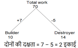 45. एक कंप्यूटर गेम में, एक बिल्डर दस घंटे में एक दीवार बना सकता है जबकि एक विध्वंसक ऐसी दीवार को चौदह घंटे में पूरी तरह से गिरा सकता है। बिल्डर और विध्वंसक दोनों को शुरू में समतल जमीन पर एक साथ काम करने के लिए लगाया गया था। लेकिन 7 घंटे बाद विध्वंसक को बाहर निकाल लिया गया। दीवार बनाने में कुल कितना समय (घंटों में) लगा? [RRB ALP 09/08/2018 (Afternoon)]