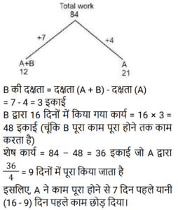 47. A और B किसी काम को 12 दिन में पूरा कर सकते हैं। A को कार्य पूरा होने के कुछ दिन पहले कार्य छोड़ना पड़ा और इसी कारण से कार्य को पूरा करने में 16 दिन लग गए। यदि अकेला A इस काम को 21 दिन में पूरा कर सकता है तो काम के खत्म होने से कितने दिन पहले A छुट्टी पर चला गया था? [RRB ALP 10/08/2018 (Afternoon)]