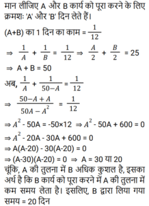 48. A और B साथ मिलकर किसी काम को 12 दिन में पूरा कर सकते हैं। यदि A अकेले काम करके आधे काम को पूरा करता है, और फिर चला जाता है और इसके बाद B अकेला काम करके शेष काम पूरा करता है। इस काम को पूरा करने में 25 दिन लगते हैं। यदि B, A की तुलना में अधिक कुशल हो तो B द्वारा स्वयं काम करने में कितने दिन लिए जाएंगे? [RRB ALP 13/08/2018 (Morning)]