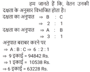 42. B, C से दोगुना कार्य-कुशल है और A, B से तीन गुना कार्य-कुशल है। यदि उन्हें एक साथ 94,842 रुपये का वेतन भुगतान किया जाता है। A द्वारा प्राप्त वेतन कितना है? [RPF Constable 18/01/2019 (Morning)]