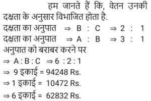 43. B, C से दोगुना कुशल है और A, B से तीन गुना कुशल है। यदि दोनों को 94,248 रुपये का वेतन भुगतान किया जाता है, तो A को कितना वेतन मिलेगा? [RPF Constable 19/01/2019 (Morning)]