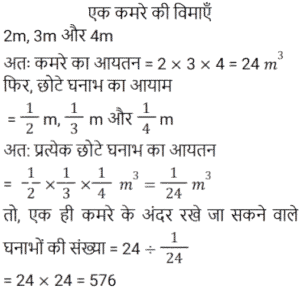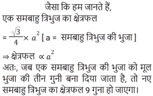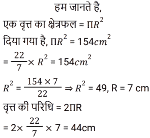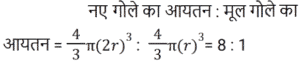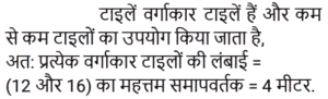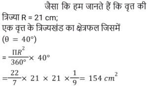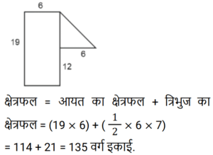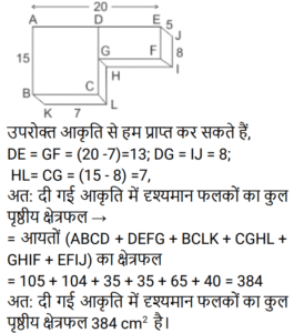 क्षेत्रमिति Part – 6Total Questions: 501. यदि एक वृत्त का क्षेत्रफल 154 cm² है, तो वृत्त की परिधि कितनी होगी? [RRB NTPC 04/01/2021 (Morning)](a) 44 cm(b) 22 cm(c) 36 cm(d) 11 cmCorrect Answer: (a) 44 cmSolution:2. घनाभ में कितनी सरल रेखाएँ होती हैं? [RRB NTPC 04/01/2021 (Evening)](a) 10(b) 12(c) 16(d) 24Correct Answer: (b) 12Solution:3. दी गई आकृति में दिखाई देने वाले फलक का कुल पृष्ठीय क्षेत्रफल कितना है? [RRB NTPC 05/01/2021 (Morning)](a) 384 cm²(b) 905 cm²(c) 580 cm²(d) 1325 cm²Correct Answer: (a) 384 cm²Solution:4. यदि एक कमरे की आयाम 2m, 3m और 4m हैं। तो इस कमरे में ½ m × ⅓ m × ¼ m आकार के कितने घन रखे जा सकते हैं? [RRB NTPC 05/01/2021 (Morning)](a) 676(b) 760(c) 576(d) 672Correct Answer: (c) 576Solution:5. एक बेलन और एक शंकु समान आधार त्रिज्या और समान ऊँचाई के हैं। बेलन के आयतन का शंकु के आयतन से अनुपात ज्ञात कीजिए। [RRB NTPC 05/01/2021 (Evening)](a) 3 : 1(b) 2 : 1(c) 1 : 3(d) 1 : 2Correct Answer: (a) 3 : 1Solution:6. यदि एक गोले की त्रिज्या को दोगुना कर दिया जाए, तो नए गोले के आयतन का मूल गोले के आयतन से अनुपात क्या होगा? [RRB NTPC 05/01/2021 (Evening)](a) 8 : 1(b) 2 : 1(c) 1 : 8(d) 1 : 2Correct Answer: (a) 8 : 1Solution:7. एक त्रिज्यखंड को 21 cm त्रिज्या वाले वृत्त से काटा जाता है। त्रिज्यखंड का कोण 40° है। वर्ग सेंटीमीटर में त्रिज्यखंड का क्षेत्रफल ज्ञात कीजिए। [RRB NTPC 07/01/2021 (Morning)](a) 156(b) 154(c) 144(d) 145Correct Answer: (b) 154Solution:8. जब एक समबाहु त्रिभुज की भुजा मूल भुजा की तीन गुनी कर दी जाती है। नए समबाहु का क्षेत्रफल कितना होगा? [RRB NTPC 07/01/2021 (Morning)](a) वास्तविक क्षेत्रफल का 3 गुना(b) वास्तविक क्षेत्रफल का 6 गुना(c) वास्तविक क्षेत्रफल का 9 गुना(d) वास्तविक क्षेत्रफल का 12 गुनाCorrect Answer: (c) वास्तविक क्षेत्रफल का 9 गुनाSolution:9. सम्पूर्ण आकृति का क्षेत्रफल क्या है? [RRB NTPC 07/01/2021 (Evening)](a) 135 वर्ग इकाई(b) 21 इकाई(c) 114 इकाई(d) 114 वर्ग इकाईCorrect Answer: (a) 135 वर्ग इकाईSolution:10. 16 मीटर लंबाई और 12 मीटर चौड़ाई वाले हॉल के फर्श को वर्गाकार टाइलों से पक्का किया जाना है। यदि कम से कम टाइलों का उपयोग किया जाना है, तो प्रत्येक वर्ग टाइल की लंबाई क्या है? [RRB NTPC 08/01/2021 (Morning)](a) 12 मीटर(b) 24 मीटर(c) 48 मीटर(d) 4 मीटरCorrect Answer: (d) 4 मीटरSolution:Submit Quiz12345Next »