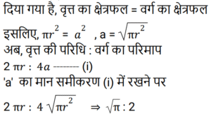 13. एक वृत्त का क्षेत्रफल एक वर्ग के क्षेत्रफल के बराबर होता है। वृत्त की परिधि का वर्ग के परिमाप से अनुपात कितना है? [RRB NTPC 01/04/2021 (Evening)]