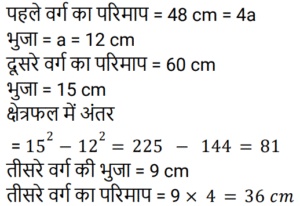 16. दो वर्गों के परिमाप 48 सेमी और 60 सेमी हैं। एक तीसरे वर्ग का परिमाप ज्ञात कीजिए जिसका क्षेत्रफल वर्गों के क्षेत्रफल के अंतर के बराबर है। [RRB NTPC 03/04/2021 (Morning)]