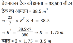 17. एक बेलनाकार टैंक की क्षमता 38,500 लीटर है। यदि ऊँचाई 4 मीटर है, तो आधार का व्यास क्या है? [RRB NTPC 03/04/2021 (Morning)]