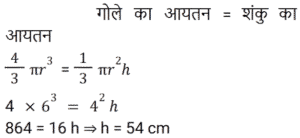 14. 12 cm व्यास वाली एक गोलाकार गेंद को पिघलाकर एक शंकु के रूप में ढाला जाता है, जिसके आधार का व्यास 8 cm है। शंकु की ऊँचाई ज्ञात कीजिए। [RRB NTPC 01/04/2021 (Evening)]