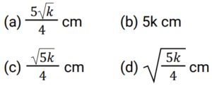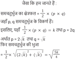 39. एक समचतुर्भुज का एक विकर्ण दूसरे से दोगुना होता है। यदि समचतुर्भुज का क्षेत्रफल k cm² है, तो उसकी भुजा की लंबाई होगी: [RRB NTPC 24/07/2021 (Evening)]