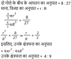 34. दो गोलों के पृष्ठीय क्षेत्रफलों का अनुपात क्या है, यदि उनके आयतन 8 : 27 के अनुपात में हैं? [RRB NTPC 08/04/2021 (Evening)]