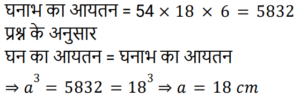 37. यदि एक घन का आयतन 54 सेमी, 18 सेमी और 6 सेमी आयामों वाले घनाभ के आयतन के बराबर है, तो घन की भुजा की लंबाई है: [RRB NTPC 23/07/2021 (Evening)]