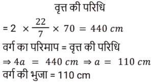 32. तार का एक टुकड़ा 70 सेमी त्रिज्या के साथ एक वृत्त बनाने के लिए मुड़ा हुआ है। यदि उसी तार के टुकड़े को एक वर्ग बनाने के लिए मोड़ा जाता है, तो वर्ग की भुजा की लंबाई ______ होगी। [RRB NTPC 08/04/2021 (Morning)]