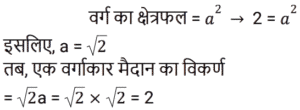 40. एक वर्गाकार मैदान का क्षेत्रफल 10,000 मी² है। उस वर्ग का परिमाप ज्ञात कीजिए जिसकी भुजा मैदान के विकर्ण के बराबर हो। [RRB NTPC 26/07/2021 (Evening)]