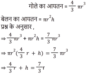 36. एक गोले ‘r’ की त्रिज्या एक लम्ब वृतीय बेलन के आधार की त्रिज्या के बराबर होती है। इन दोनों ठोसों का कुल आयतन 7/3 πr² है। यदि ‘h’ बेलन की ऊँचाई है तो h/r ज्ञात करें। [RRB NTPC 23/07/2021 (Morning)]