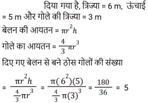 38. एक ठोस बेलन की त्रिज्या और ऊँचाई 6 m और 5 m है। उस बेलन से 3 m त्रिज्या के कितने ठोस गोले बनाए जा सकते हैं? [RRB NTPC 24/07/2021 (Morning)]