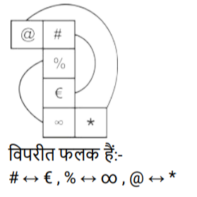 घन और पासा (भाग-I)Total Questions: 5021. नीचे एक ही पासे की दो अलग-अलग स्थितियाँ दी गई हैं। संख्या 1 वाले फलक के विपरीत फलक पर कौन-सी संख्या है? [SSC CGL 11/09/2024 (2nd Shift)](a) 6(b) 5(c) 4(d) 3Correct Answer: (a) 6Solution:दो पासों से विपरीत फलक हैं 2 ↔ 4 , 3 ↔ 5 , 6 ↔ 122. T, O, B, L, Y और V फलकों वाले एक ही पासे की दो अलग-अलग स्थितियाँ नीचे दिखाई गई हैं। उस अक्षर का चयन कीजिए जो L अक्षर वाले फलक के विपरीत फलक पर होगा। [SSC CGL 12/09/2024 (1st Shift)](a) Y(b) B(c) V(d) OCorrect Answer: (d) OSolution:दोनों पासों के विपरीत फलक हैं B ↔ T , O ↔ L23. एक पासे के विभिन्न फलकों पर छ: अक्षर J, K, L, M, N और O लिखे गए हैं। नीचे दिए गए चित्र में इस पासे की दो स्थितियों को दर्शाया गया है। दिए गए विकल्पों में से J के विपरीत फलक पर लिखा अक्षर ज्ञात कीजिए। [SSC CGL 12/09/2024 (2nd Shift)](a) M(b) O(c) L(d) NCorrect Answer: (d) NSolution:पासे से 1 और 2 विपरीत फलक हैं N ↔ J, M ↔ K, O ↔ L24. दी गई शीट को दर्शाई गई रेखाओं के अनुदिश मोड़कर एक घन का निर्माण किया जाता है। इस प्रकार बनने वाले घन में, '#' के विपरीत फलक पर कौन-सा चिह्न होगा ? [SSC CGL 12/09/2024 (3rd Shift)](a) @(b) ∞(c) €(d) %Correct Answer: (c) €Solution:25. नीचे एक ही पासे की दो अलग-अलग स्थितियाँ दर्शाई गई हैं। '5' दर्शाने वाले फलक के विपरीत वाले फलक पर कौन-सी संख्या होगी? [SSC CGL 12/09/2024 (3rd Shift)](a) 6(b) 3(c) 1(d) 2Correct Answer: (b) 3Solution:दो पासों के विपरीत फलक हैं 2 ↔ 6 , 1 ↔ 4 , 3 ↔ 526. एक पासे के विभिन्न फलकों पर छह प्रतीक %, &, ?, +, $ और @ अंकित हैं। नीचे दी गई आकृति में इस पासे की दो स्थितियाँ दर्शाई गई हैं। @ वाले फलक के विपरीत फलक पर प्रतीक ज्ञात कीजिए । [SSC CGL 13/09/2024 (2nd Shift)](a) $(b) &(c) %(d) ?Correct Answer: (d) ?Solution:दोनों पासों के विपरीत फलक हैं & ↔ $ , % ↔ + , ? ↔ @27. एक पासे के विभिन्न फलकों पर छह अक्षर B, F, D, X, N और A लिखेगए हैं। इस पासे की दो स्थितियाँ नीचे चित्र में दर्शाई गई हैं। D के विपरीत वाले फलक पर आने वाला अक्षर ज्ञात कीजिए। [SSC CGL 13/09/2024 (3rd Shift)](a) A(b) N(c) B(d) FCorrect Answer: (a) ASolution:दोनों पासों के विपरीत फलक हैं F ↔ N, B ↔ X, D ↔ A28. एक पासे के फलकों पर संख्याएँ1, 2, 3, 5, 6 और 8 अंकित हैं। एक ही पासे की दो अलग-अलग स्थितियाँ नीचे दिखाई गई हैं। वह संख्या चुनिए, जो संख्या 6 वाले फलक के विपरीत फलक पर होगी। [SSC CGL 17/09/2024 (1st Shift)](a) 8(b) 3(c) 2(d) 1Correct Answer: (a) 8Solution:दोनों पासों के विपरीत फलक हैं 5 ↔ 2, 3 ↔ 1, 6 ↔ 829. एक पासे के विभिन्न फलकों पर छ: शब्द हाथ (Hand), पैर (Leg), आँख (Eye), नाक (Nose), मुँह (Mouth) और कान (Ear) लिखे हुए हैं। नीचे चित्र में इस पासे की तीन स्थितियां दिखाई गई है। हाथ (Hand) शब्द के विपरीत फलक पर कौन-सा शब्द है? [SSC CGL 17/09/2024 (3rd Shift)](a) पैर (Leg)(b) नाक (Nose)(c) मुँह (Mouth)(d) कान (Ear)Correct Answer: (c) मुँह (Mouth)Solution:पासे (ii) और (iii) से, 'नाक' और 'पैर' उभयनिष्ठ है। तो, 'हाथ' का विपरीत फलक 'मुंह' है।30. एक पासे के विभिन्न फलकों पर छ: अक्षर A, B, C, D, E और F लिखे गए हैं। नीचे चित्र में इस पासे की तीन स्थितियाँ दिखाई गई है। अक्षर A के विपरीत फलक पर कौन-सा अक्षर है? [SSC CGL 18/09/2024 (1st Shift)](a) C(b) D(c) E(d) FCorrect Answer: (c) ESolution:पासे i और ii में, अक्षर (B, C) उभयनिष्ठ है तो, '‘A’' का विपरीत ‘E है।Submit Quiz« Previous12345Next »