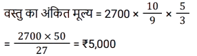 13. एक वस्तु 10% की छूट पर बेची जाती है और नकद भुगतान करने पर 40% की अतिरिक्त छूट भी दी जाती है। यदि अनीता ने इस वस्तु को ₹2,700 नकद भुगतान कर के ख़रीदा, तो वस्तु का अंकित मूल्य कितना था ? [SSC CHSL 02/06/2022 (Afternoon)]