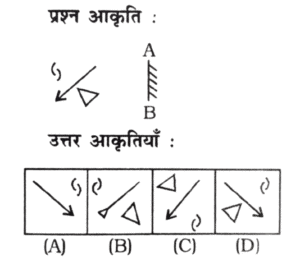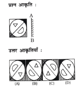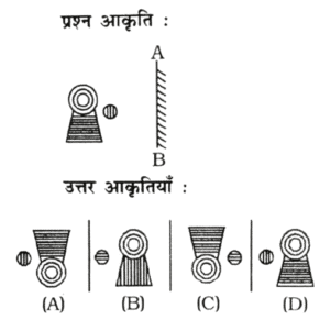 दर्पण एवं जल प्रतिबिम्ब (TYPE-I) (151-182 प्रश्न)Total Questions: 321. अगर दर्पण को AB रेखा पर रखा जाता है, तो निम्न आकृति की सही दर्पण छवि चुनें। [RRB ALP एवं Technician परीक्षा, 13.08.2018 तृतीय पाली](1) D(2) A(3) C(4) BCorrect Answer: (1) DSolution:सही दर्पण प्रतिबिम्ब आकृति 'D' है।2. निम्नलिखित में से कौन-सा विकल्प दिए गए चित्र के सही दर्पण प्रतिबिंब को दर्शाता है? [RRB ALP एवं Technician परीक्षा, 14.08.2018 प्रथम पाली](1)(2)(3)(4)Correct Answer: (3)Solution:दिए गए शब्द का सही दर्पण प्रतिबिम्ब विकल्प '3' है।3. यदि AB दर्पण है तो दिए गए चार उत्तर विकल्पों (Answer Figures) में से नीचे दी गई आकृति की सही दर्पण छवि चुनिए। [RRB ALP एवं Technician परीक्षा, 14.08.2018 तृतीय पाली](1) D(2) B(3) A(4) CCorrect Answer: (1) DSolution:सही दर्पण प्रतिबिम्ब 'D' है।4. कौन-सी उत्तर-आकृति (Answer Figures) दी गई प्रश्न-आकृति (Problem Figure) का सही दर्पण प्रतिबिम्ब है? [RRB ALP एवं Technician परीक्षा, 17.08.2018 प्रथम पाली](1) A(2) C(3) D(4) BCorrect Answer: (3) DSolution:दिए गए आकृति का सही दर्पण प्रतिबिम्ब विकल्प 'D' है।5. निम्नलिखित में से कौन-सा विकल्प दिए गए शब्द के सही दर्पण प्रतिबिम्ब को दर्शाता है (आकार को अनदेखा) करें? [RRB ALP एवं Technician परीक्षा, 17.08.2018 तृतीय पाली](1)(2)(3)(4)Correct Answer: (4)Solution:सही दर्पण प्रतिबिम्ब = 6. यदि AB दर्पण है तो दिए गए चार विकल्पों में से प्रश्न छवि (Problem figure) की सही दर्पण छवि कौन-सी होगी? [RRB ALP एवं Technician परीक्षा, 20.08.2018 प्रथम पाली](1) C(2) A(3) D(4) BCorrect Answer: (1) CSolution:उत्तर आकृति 'C' प्रश्न आकृति का सही दर्पण प्रतिबिंब है।7. उस विकल्प का चयन करें जो MN पर दर्पण को रखे जाने पर निम्न चित्र के सही दर्पण प्रतिबिम्ब को चित्रित करता है। [RRB ALP एवं Technician परीक्षा, 21.08.2018 प्रथम पाली](1)(2)(3)(4)Correct Answer: (3)Solution:सही दर्पण प्रतिबिम्ब विकल्प '3' होगा।8. उस उत्तर-आकृति का चयन करें जो दी गई प्रश्न आकृति का सही दर्पण प्रतिबिम्ब है। [RRB ALP एवं Technician परीक्षा, 29.08.2018 प्रथम पाली](1) C(2) A(3) B(4) DCorrect Answer: (4) DSolution:दी गई आकृति का सही दर्पण प्रतिबिम्ब 'D' होगा।9. उस विकल्प का चयन करें जो दिए गए शब्द का सही दर्पण प्रतिबिम्ब दर्शाता है। [RRB ALP एवं Technician परीक्षा, 29.08.2018 तृतीय पाली](1)(2)(3)(4)Correct Answer: (3)Solution:दिए गए शब्द का सही दर्पण प्रतिबिंब विकल्प '3' है।10. उस विकल्प का चयन करें जो MN पर दर्पण को रखे जाने पर निम्न चित्र के सही दर्पण चित्र को चित्रित करता है (आकार की अनदेखी करें)। [RRB ALP एवं Technician परीक्षा, 29.08.2018 तृतीय पाली](1)(2)(3)(4)Correct Answer: (3)Solution:सही दर्पण चित्र विकल्प '3' होगा।Submit Quiz1234Next »