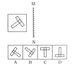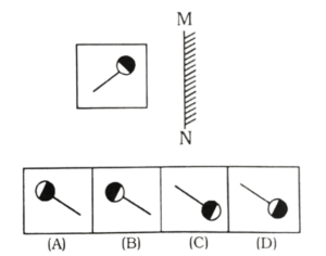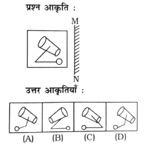 23. दर्पण को MN रेखा पर रखे जाने पर निम्न आकृति का दर्पण प्रतिबिम्ब चुनें। [RRB Group 'D' CBT परीक्षा, 17.09.2018 प्रथम पाली]