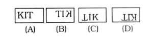 Solution:प्रश्न में दिए गए शब्द 'KIT' का दर्पण प्रतिबिम्ब छवि उत्तर आकृति श्रृंखला के विकल्प B के समरूप बनेगी।