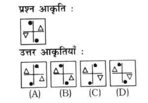 दर्पण एवं जल प्रतिबिम्ब (TYPE-II) (1-39 प्रश्न)Total Questions: 3921. दिए गए चार विकल्पों में से नीचे दी गई आकृति का जल में बनने वाल सही प्रतिबिंब चुनें। [RRB ALP एवं Technician परीक्षा, 13.08.2018 प्रथम पाली](1) B(2) A(3) C(4) DCorrect Answer: (4) DSolution:सही जल प्रतिबिम्ब विकल्प '4' है।22. नीचे दिए गए चार चित्रों में से, नीचे दिए गए चित्र की पानी में सही छवि का चयन करें। [RRB ALP एवं Technician परीक्षा, 17.08.2018 प्रथम पाली](1) D(2) C(3) B(4) ACorrect Answer: (2) CSolution:सही प्रतिबिंब आकृति (c) होगा।23. उत्तर चित्रों (answer figures) में से दिए गए समस्या चित्र (problem figure) की पानी में सही छवि का चयन करें। [RRB ALP एवं Technician परीक्षा, 17.08.2018 तृतीय पाली](1) A(2) C(3) B(4) DCorrect Answer: (1) ASolution:समस्या चित्र का पानी में सही छवि 'A' होगा।24. इस प्रश्न चित्र का सही जल प्रतिबिम्ब चुनें। [RRB ALP एवं Technician परीक्षा, 29.08.2018 प्रथम पाली](1) D(2) A(3) C(4) BCorrect Answer: (2) ASolution:दिए गए चित्र का सही जल प्रतिबिम्ब 'A' होगा।25. दिए गए चार विकल्पों में से नीचे दी गई आकृति का जल में बनने वाला सही प्रतिबिम्ब चुनें। [RRB ALP एवं Technician परीक्षा, 29.08.2018 प्रथम पाली](1) A(2) B(3) D(4) CCorrect Answer: (4) CSolution:दी गई आकृति का सही जल प्रतिबिम्ब 'C' होगा।26. कौन-सा उत्तर चित्र (Answer Figure) दिए गए प्रश्न चित्र (Problem Figure) की सही जल छवि को दर्शाता है? [RRB ALP एवं Technician परीक्षा, 30.08.2018 प्रथम पाली](1) A(2) D(3) C(4) BCorrect Answer: (3) CSolution:प्रश्न चित्र का सही जल चित्र उत्तर आकृति 'C' है।27. दिए गए विकल्पों में से दिए प्रश्न का सही जल छवि चुनें। [RRB RPF SI एवं RPSF परीक्षा, 05.01.2019 द्वितीय पाली](1)(2)(3)(4)Correct Answer: (4)Solution:दिए गए शब्द का सही जल प्रतिबिम्ब विकल्प - (4) होगा।28. दी गयी आकृति के जल छवि का चयन विकल्पों से करें। [RRB RPF SI एवं RPSF परीक्षा, 05.01.2019 तृतीय पाली](1)(2)(3)(4)Correct Answer: (2)Solution:दी गई आकृति का जल प्रतिबिम्ब विकल्प - (2) होगा।29. निम्नलिखित विकल्पों में से दिए गए प्रश्न के लिए उपयुक्त जल-प्रतिबिंब का चयन करें: [RRB RPF SI एवं RPSF परीक्षा, 06.01.2019 द्वितीय पाली](1)(2)(3)(4)Correct Answer: (2)Solution:दिए गए आकृति का सही जल प्रतिबिम्ब विकल्प - (2) होगा।30. दिए गए विकल्पों में से दिए प्रश्न का सही जल प्रतिम्बिम्ब चुनें। [RRB RPF SI एवं RPSF परीक्षा, 06.01.2019 तृतीय पाली] (1)(2)(3)(4)Correct Answer: (4)Solution:दिए गए शब्द की सही जल प्रतिबिम्ब विकल्प-(4) होगा।Submit Quiz« Previous1234Next »