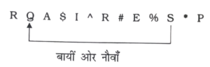 पदानुक्रम/व्यवस्थीकरण/समस्या समाधान Type-I (100 – 129 प्रश्न) Total Questions: 2911. नीचे लिखी व्यवस्था में कितने ऐसे संख्या हैं जिनके ठीक पहले एक व्यंजन है और ठीक बाद में एक अक्षर है? [RRB ALP एवं Technician परीक्षा, 14.08.2018 (तृतीय पाली)]Q@A3RI4*6T4W4O2^E$6S(1) चार(2) तीन(3) एक(4) दोCorrect Answer: (4) दोSolution:ऐसे संख्या जिनके ठीक पहले एक व्यंजन और ठीक बाद में अक्षर है = दो12. 5442673314884743581 श्रृंखला में, दाईं ओर से सातवें पद के बाएँ से छठी संख्या कौन-सी है: [RRB ALP एवं Technician परीक्षा, 17.08.2018 (प्रथम पाली)](1) 7(2) 3(3) 1(4) 4Correct Answer: (2) 3Solution:13. A$1%MB#6&NC=3!OD+KP [RRB ALP एवं Technician परीक्षा, 17.08.2018 (तृतीय पाली)]1 से लेकर O (दोनों सम्मिलित) तक हर प्रत्यावर्ती अक्षर या अंक या चिह्न निकाल दिया जाए तो दाईं ओर से पाँचवाँ पर कौन सा होगा :(1) C(2) #(3) M(4) &Correct Answer: (2) #Solution:1 से लेकर 0 तक हर प्रत्यावर्ती अक्षर या अंक या चिह्न निकालने पर प्राप्त श्रृंखला1 M # & C 3 0दाईं ओर से पाँचवां पद = #14. नीचे लिखी व्यवस्था में कितने ऐसे अक्षर हैं जिनके ठीक पहले एक संख्या है लेकिन ठीक बाद में एक अक्षर नहीं है? [RRB ALP एवं Technician परीक्षा, 20.08.2018 (प्रथम पाली)]Q@A3RI4*6T4&4O2^$WS(1) एक(2) तीन(3) दो(4) चारCorrect Answer: (3) दोSolution:वैसे अक्षर जिनके ठीक पहले एक संख्या एवं ठीक बाद में कोई अक्षर नहीं है = 402, 6 T 4अतः अभीष्ट संख्या = 1/215. ABC$+#DEF&=?GHI!2*@ क्रम का उपयोग करते हुए, निम्न व्यंजक में रिक्त स्थान भरें। [RRB ALP एवं Technician परीक्षा, 29.08.2018 (प्रथम पाली)]A $ D___G ! @(1) &(2) ?(3) =(4) FCorrect Answer: (1) &Solution:16. 5JA8K6G4OC1659NLEPUF [RRB ALP एवं Technician परीक्षा, 29.08.2018 (तृतीय पाली)]ऊपर दी गई श्रृंखला में बाएं से दाएं, क्रम को बदले बिना ऐसे जोड़ों की संख्या कितनी है जिसमें पहला अक्षर और दूसरी संख्या है?(1) 4(2) 1(3) 2(4) 3Correct Answer: (1) 4Solution:ऐसे जोड़ों की संख्या जिसमें पहला अक्षर और दूसरी संख्या है= A8, K6, G4, C1अतः ऐसे जोड़ों की संख्या = 417. दी गई श्रृंखला के दूसरे आधे भाग को उलटने के बाद बनी नयी श्रृंखला में दाईं ओर से आठवां शब्द क्या होगा? [RRB ALP एवं Technician परीक्षा, 30.08.2018 (तृतीय पाली)]9$YX8N60LBUJZT@1QFD%(1) 1(2) F(3) 9(4) DCorrect Answer: (2) FSolution:दिए गए श्रृंखला9 $ Y X 8 N 6 O L B U J Z T @ 1 Q F D %दूसरे आधे को पलटने पर प्राप्त श्रृंखला9 $ Y X 8 N 6 O L B % D F Q 1 @ T Z J U में दाएँ से 8वाँ पद = F18. दिए गए अनुक्रम में, यदि बाई ओर से 8वें स्थान से आरम्भ होने वाले अक्षरों कों, अंग्रेजी वर्णमाला में उनके अगले अंक पर रहे अक्षर से प्रतिस्थापित किया जाता है और 2 को A से प्रतिस्थापित किया जाता है तो परिणामस्वरूप बनने वाले अनुक्रम में कितने V होंगे? [RRB ALP एवं Technician परीक्षा, 31.08.2018 (प्रथम पाली)]Z U D J K N C X V C S L L I E B S F J V A T W O K(1) 0(2) 3(3) 2(4) 1Correct Answer: (1) 0Solution:दिए गए श्रृंखला Z U D J K N C X V C S L L I E B S F J V A T W Q Kव्यवस्थित श्रृंखला A U D J K N C Y W D T M M J F C T G K W B U X R Lव्यवस्थित श्रृंखला में 'V' की संख्या = 019. उत्तर की ओर मुँह करके खड़े 21 बच्चों की एक पंक्ति में, नितिन सीता के दाईं ओर तीसरे स्थान पर हैं, जो पंक्ति के दाईं छोर से नौवें स्थान पर हैं। बाईं छोर से नितिन की स्थिति ज्ञात कीजिए। [RRB Junior Engineer परीक्षा, 28.06.2019 (तृती