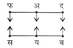 (VI) फ, अ के तुरंत दाहिनी ओर बैठा है।