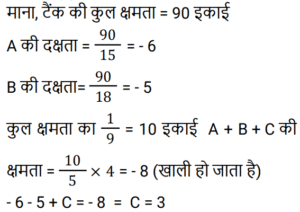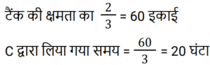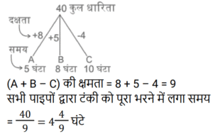 33. दो पाइप A और B एक टंकी को क्रमशः 5 घंटे और 8 घंटे में पूरी तरह से भर सकते हैं। पाइप C इस टंकी को 10 घंटे में पूरी तरह से खाली कर सकता है। यदि तीनों पाइपों को एक साथ खोल दिया जाए, तो टंकी को पूरी तरह से भरने में कितना समय लगेगा? [Group D 19/09/2022 (Afternoon)]