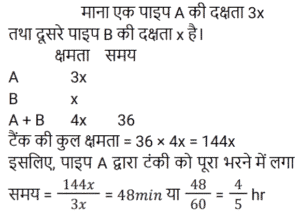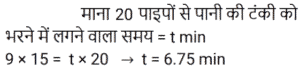 36. समान धारिता वाले 15 पाइपों का उपयोग करके पानी की एक टंकी को 9 मिनट में भरा जा सकता है। उपरोक्त के समान धारिता वाले 20 पाइपों का उपयोग किए जाने पर पानी की उस टंकी को कितने मिनट में भरा जा सकेगा? [Group D 28/09/2022 (Evening)]
