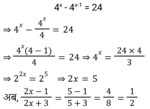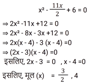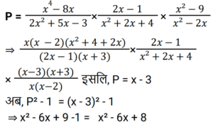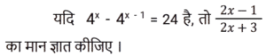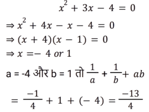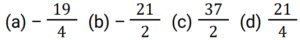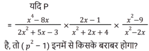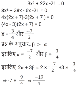 बीजगणित Part-3Total Questions: 501. दिए गए प्रश्न का उत्तर ज्ञात कीजिए ? [Group D 05/09/2022 ( Morning )](a) 1/5 (b) 3/7 (c) 1/2(d) 1/3Correct Answer: (c) 1/2Solution:2. दिए गए प्रश्न का उत्तर ज्ञात कीजिए ? [Group D 05/09/2022 ( Afternoon )](a) - 2(b) 2(c) 3(d) - 3Correct Answer: (c) 3Solution:3. यदि a और b, समीकरण x² + 3x - 4 =0 के मूल हैं, तो 1/a + 1/b + ab का मान ज्ञात कीजिए। [Group D 05/09/2022 ( Afternoon )](a)(b)(c)(d)Correct Answer: (d)Solution:4. द्विघात समीकरण x² - 4x + 3 = 0 के मूल क्या होंगे? [Group D 05/09/2022 ( Evening )](a) 1 और 3 (b) -1 और 3(c) -1 और -3 (d) 1 और -3Correct Answer: (a) 1 और 3 Solution:5. दिए गए प्रश्न का उत्तर ज्ञात कीजिए ? [Group D 05/09/2022 ( Evening ) ](a) 2 (b) 3 (c) 1(d) 0Correct Answer: (c) 1Solution:6. द्विघात समीकरणों 2x² – 5x – 3 = 0 और x² + x –12 = 0 का उपयनिष्क मूल क्या होगा ? [Group D 05/09/2022 (Evening)](a)(b)(c)(d)Correct Answer: (c)Solution:7. यदि α और β, समीकरण 8x² + 22x – 21 = 0 के मूल हैं, जहाँ β > α है, तो (2α + 3β) का मान ज्ञात कीजिए। [Group D 06/09/2022 (Morning)](a)(b)(c)(d)Correct Answer: (a)Solution:8. द्विघात समीकरण x² – 11x/2 + 6 = 0 के मूल ज्ञात कीजिए। [Group D 06/09/2022 (Morning)](a) 2 और 3/2(b) 4/3 और 3/2(c) 2 और 4/3(d) 4 और 3/2Correct Answer: (d) 4 और 3/2Solution:9. दिए गए प्रश्न का उत्तर ज्ञात कीजिए ? [Group D 06/09/2022 (Morning)](a) x² – 6x + 8(b) x² – 6x + 10(c) x² + 6x + 10(d) x² + 6x + 8Correct Answer: (a) x² – 6x + 8Solution:10. यदि a = 50, b = 20 है, तो a³ + b³ का मान ज्ञात कीजिए। [Group D 06/09/2022 (Morning)](a) 2,03,000(b) 1,56,000(c) 1,33,000(d) 1,75,000Correct Answer: (c) 1,33,000Solution:Submit Quiz12345Next »