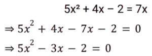 Correct Answer: (c) 5x² + 4x − 2 = 7x