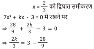 13. यदि द्विघात समीकरण 7x² + kx − 3 = 0 का एक हल x = 2/3 है, तो k का मान निम्नलिखित में से किस समीकरण को संतुष्ट करता है? [Group D 27/09/2022 (Evening)]